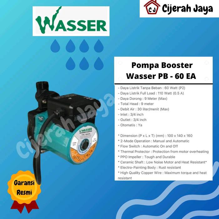 Pompa Booster Wasse Pb 60 Ea / Mesin Pompa Air Dorong Wasser Pb60Ea Pb-60Ea 1 Titik Tujuan 60Watt