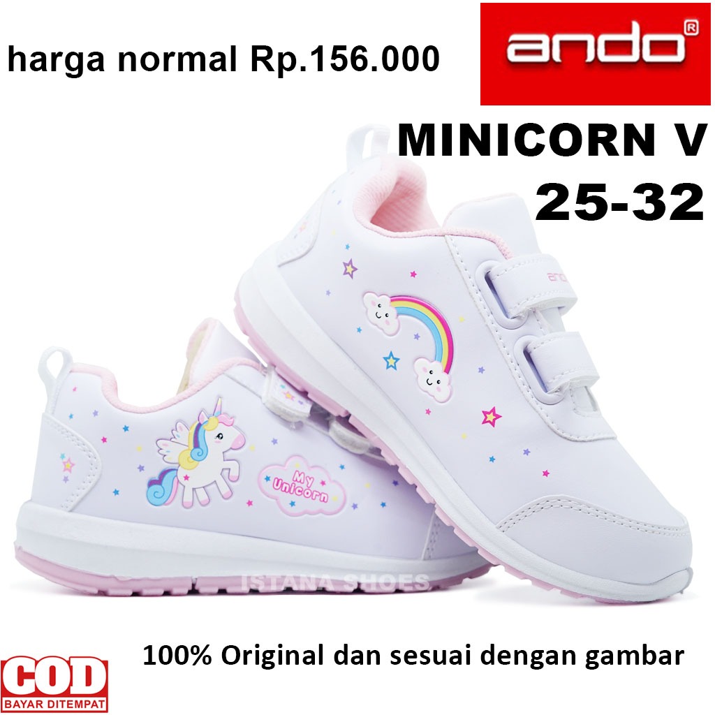 Sepatu Anak Perempuan PAUD TK SD Usia 3 4 5 6 7 Tahun ANDO MINICORN Kuda Pony Perekat Sepatu Sekolah Anak Cewe