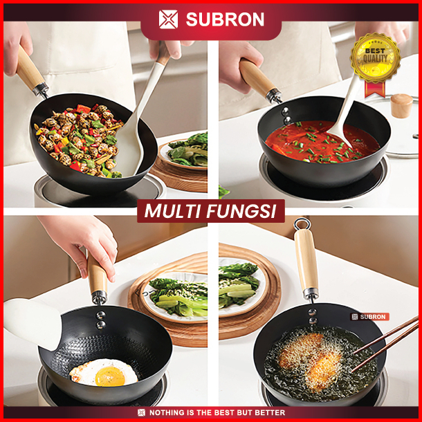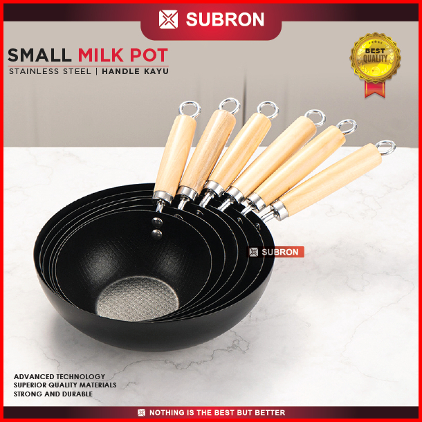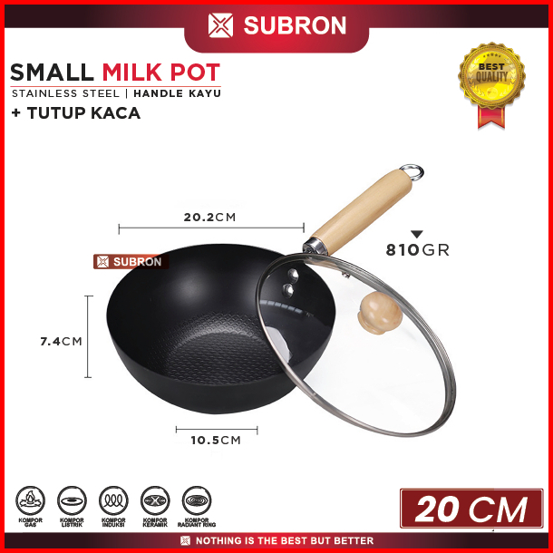 Subron Panci Susu Anti Lengket 18cm 20cm 22cm 24cm 26cm 28cm Milk Pot Stainless Tutup Kaca Handle Kayu