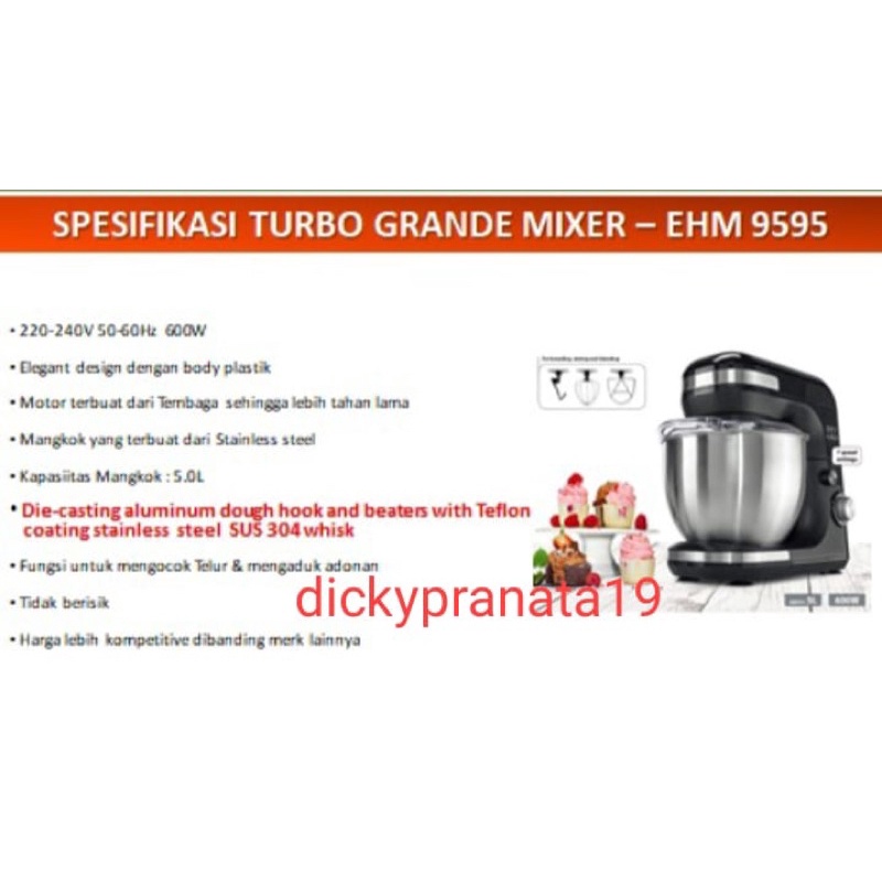 Stand mixer GRANDE TURBO ehm9595 / ehm 9595 mixer roti 5ltr