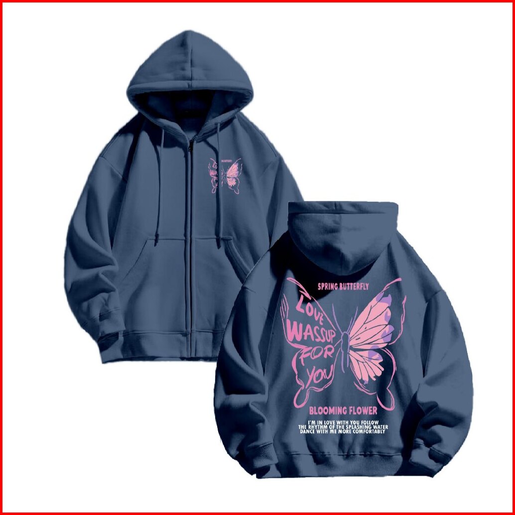 Hoodie Jaket Zipper Jyb Oversize Spring Butterfly Sablon Size M-xxl Unisex Pria Wanita