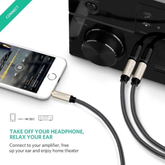 UGREEN Kabel Audio Aux Jack 3.5mm to Akai 6.5mm 6.35mm TRS Stereo