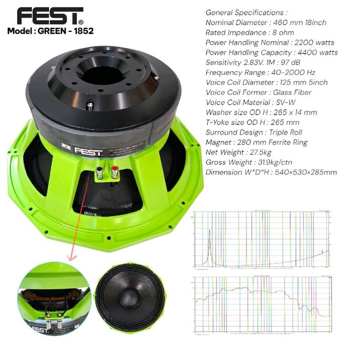 KOMPONEN SPEAKER FEST GREEN 1852 18INCH DOUBLE MAGNET GREEN1852 ORIGINAL
