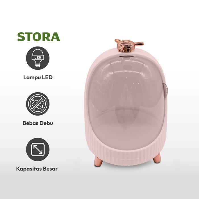 AZKO STORA 17.5X17.5X25.5 CM ORGANIZER KOSMETIK LED TEMPAT MAKEUP WADAH SIMPAN ALAT DANDAN COSMETIC ORGANIZER ORGANISER PRODUK KECANTIKAN - PINK