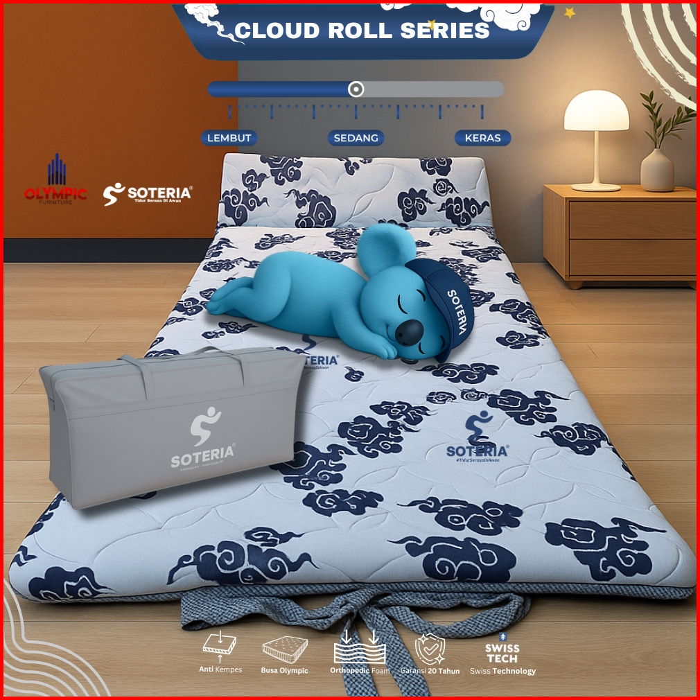 Olympic X Soteria Cloud Series Kasur Lipat Portable Bonus Tas Travel Resleting Matras Busa Soteria Original Premium Anti