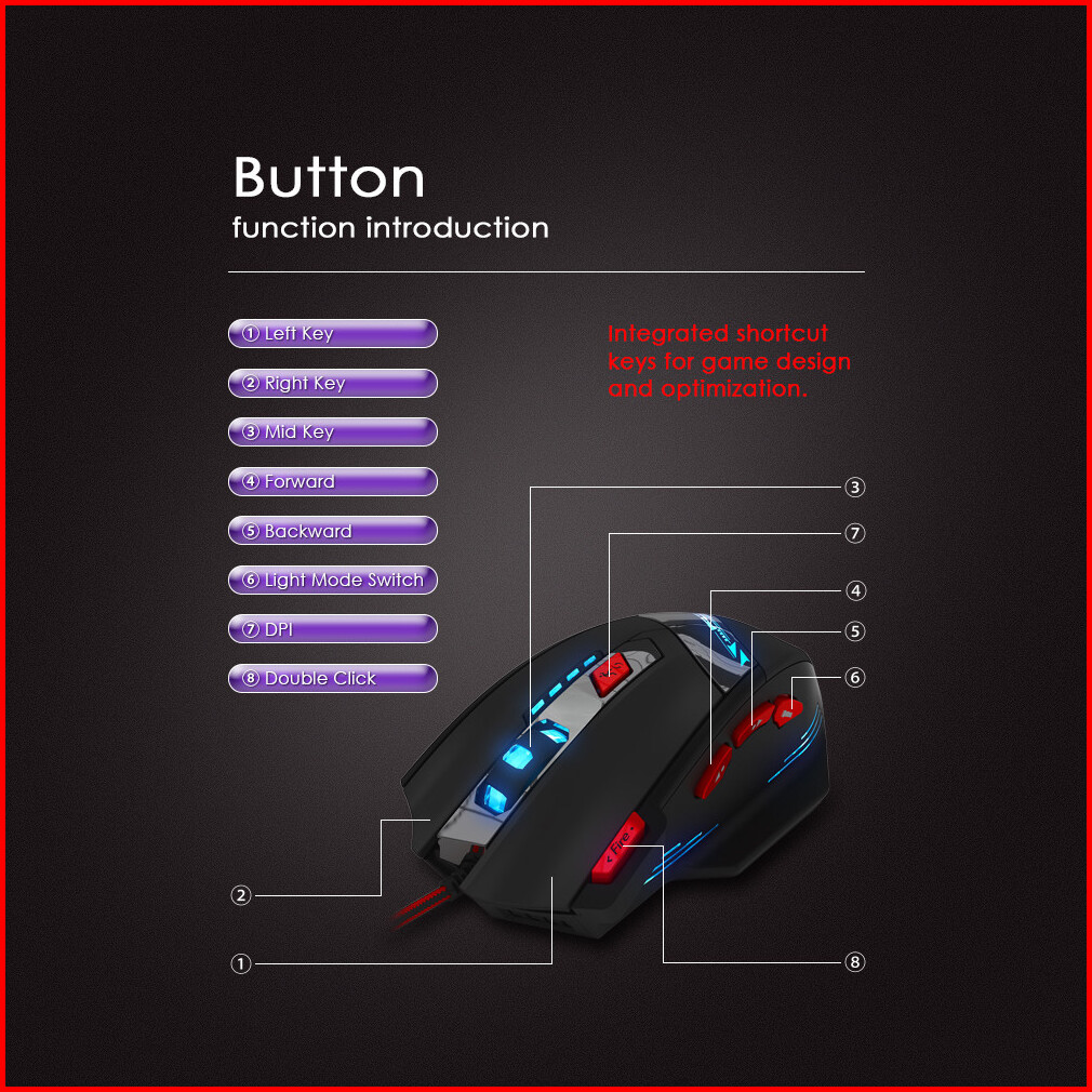 Zelotes T90 Professional 9200 Dpi 8 Button High Precision Usb Wired Gaming Mouse