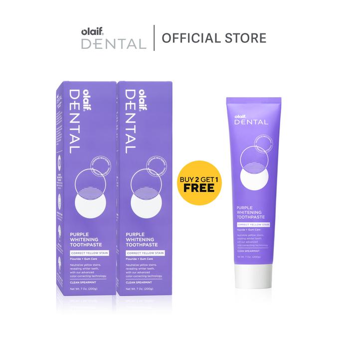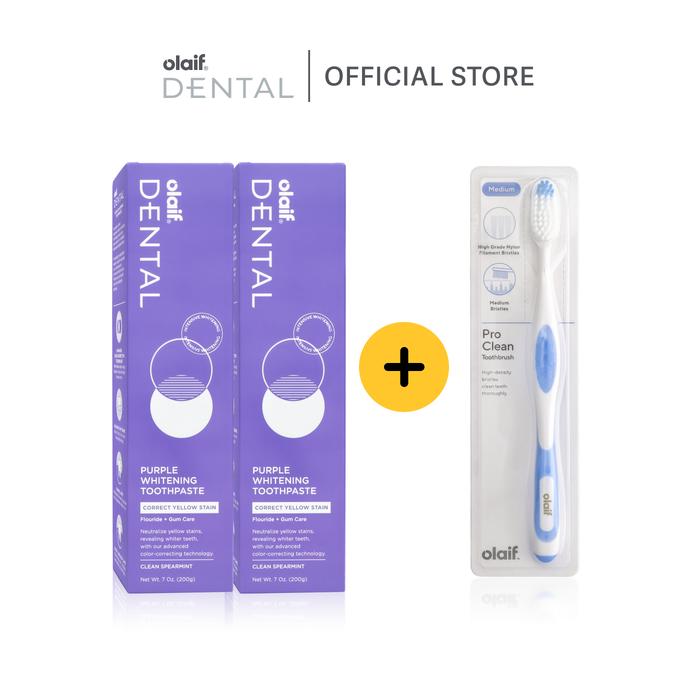 [Bundle 3] Olaif Dental Purple Whitening Toothpaste 200G / Pro Clean Toothbrush - Pasta Gigi Pemutih - Buy 2 Get 1 Free