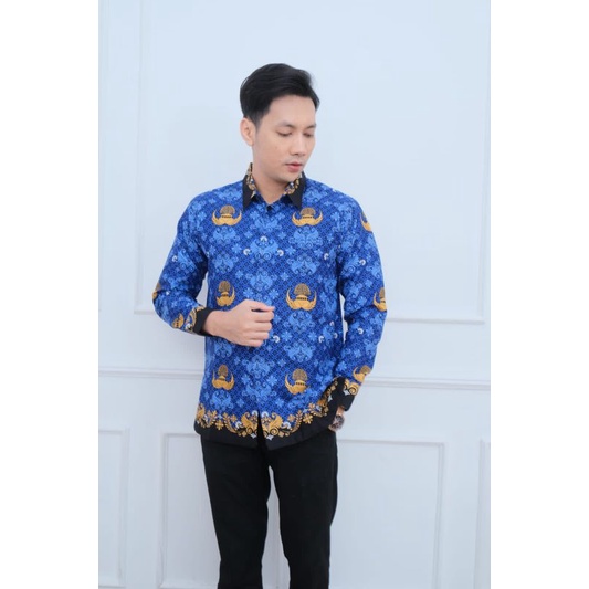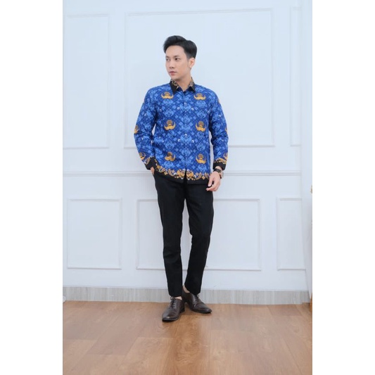 seragam batik KORPRI biru dinas PNS lengan panjang full furing