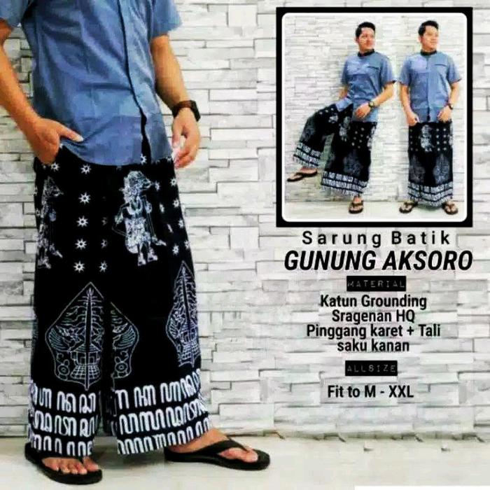 Sarung Celana Dewasa Motif Wayang Celana Sarung All Size Fit Xxl Batik Muslim - Jkw Hitam