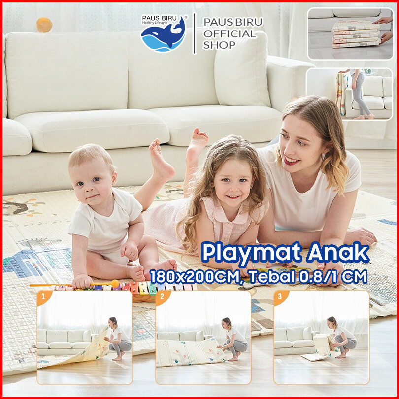 Sni Paus Biru - Matras Bayi Merangkak 180x200 Cm Playmatt Lipat Alas Main Anak Bayi Dari Busa Tebal Anti-slip Aman Untuk