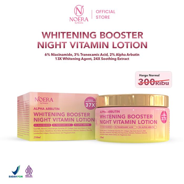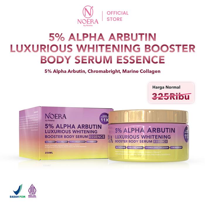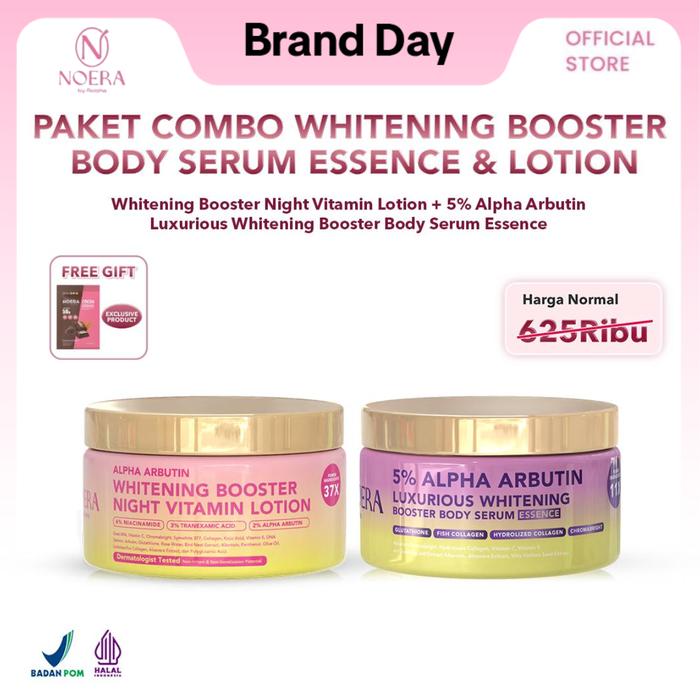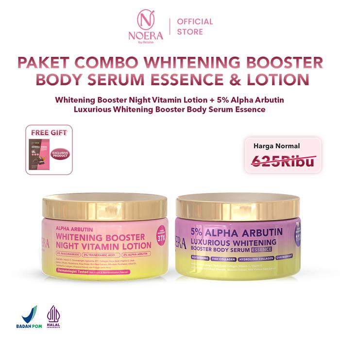 Noera Paket Combo Whitening Booster Body Serum Essence & Lotion L Whitening Booster Night Vitamin Lotion & 5 PERSEN Alpha Arbu