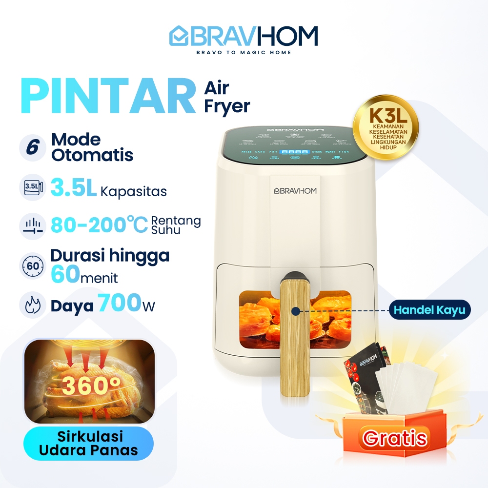 BRAVHOM Air Fryer 700 Watt 3,5L Tampilan LED Anti Lengket Mesin Penggorengan / air fryer / air fryer low watt