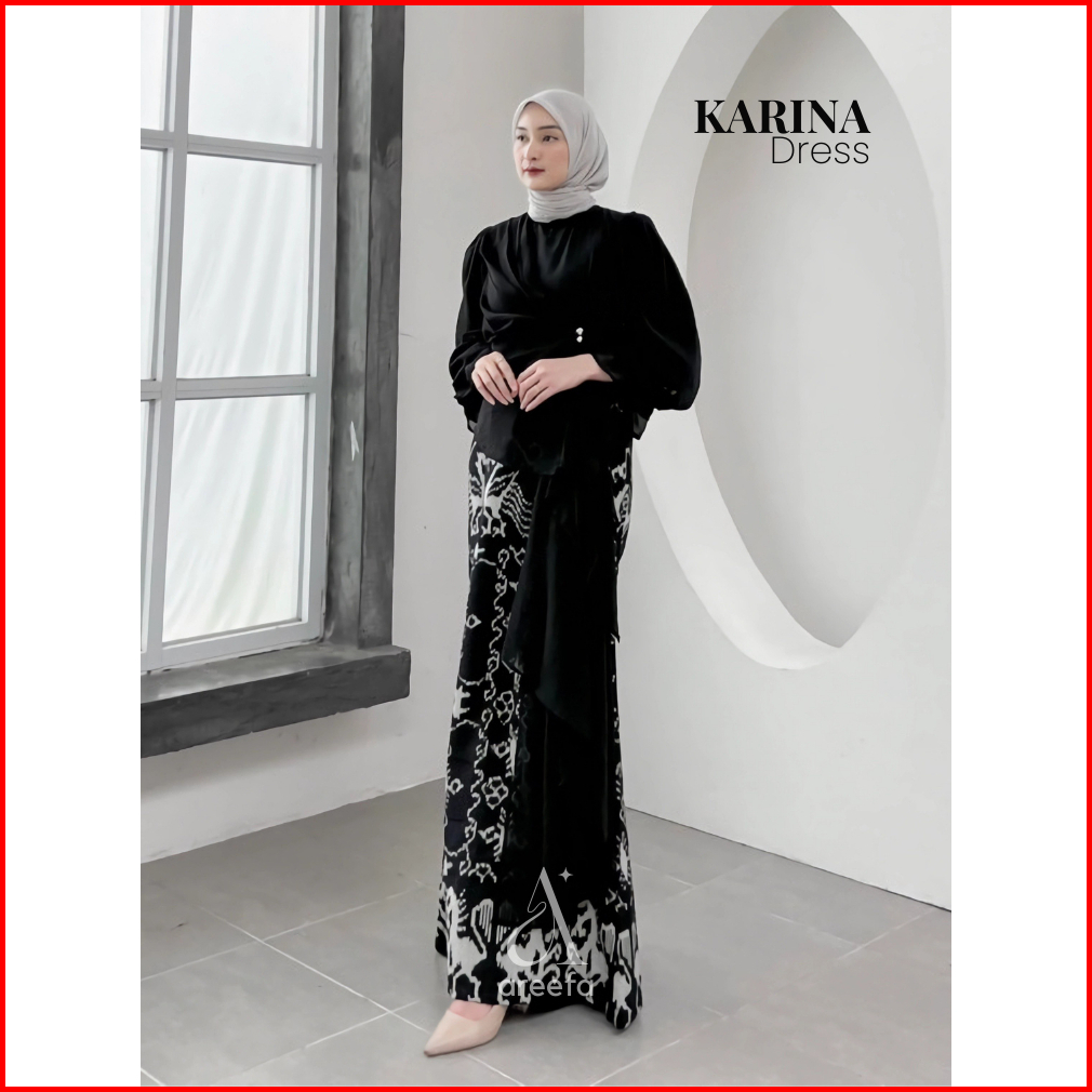 Areefa - Gamis Dress Tenun Etnik Kombinasi Ceruty Premium Wanita Remaja Pesta Mewah Kekinian Terbaru