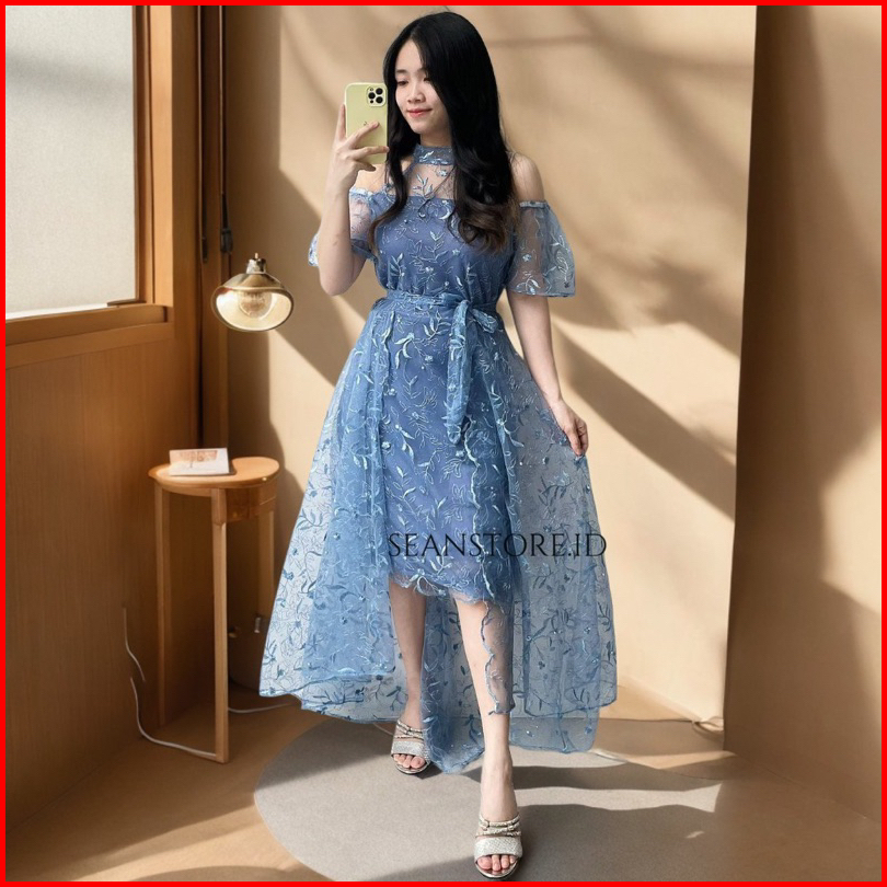 Glowy Dress Sabrina Wanita Elegant Anggun Dress Bridesmaid Prewedding Pesta Kondangan Imlek Dress Gereja Natal Terbaru
