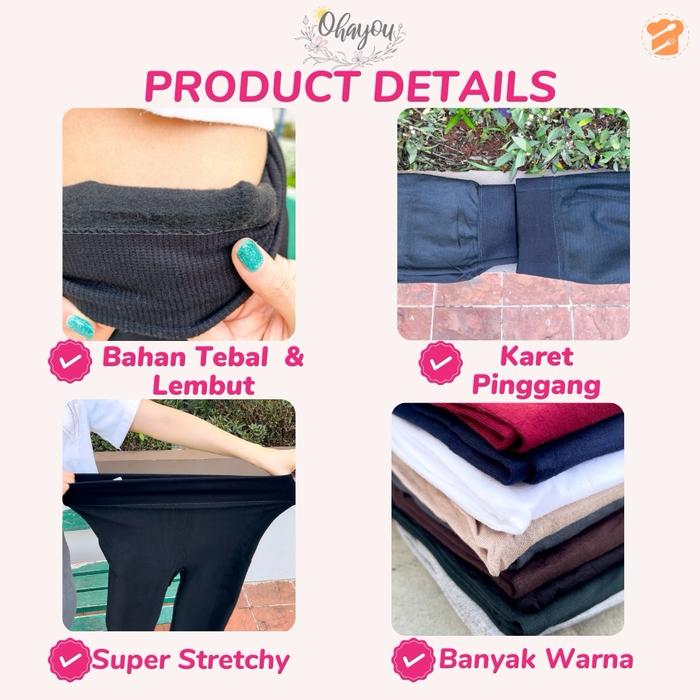 Ohayou Celana Legging Highwaist Wanita Dewasa 7/8 Panjang Elastis Nyaman Tebal Premium Fit To S - Xl - 7/8 - Black, All