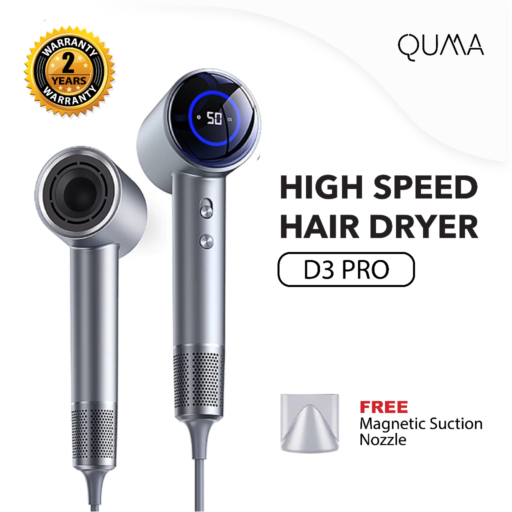QUMA High Speed Hair Dryer D3 Pro Series | Pengering Rambut Profesional Strong Wind Fast Drying - Grey