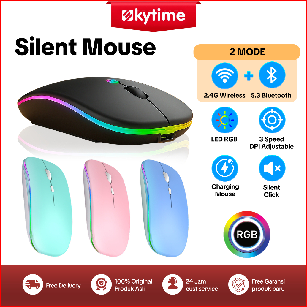 Skytime S9 Mouse Bluetooth 5.4 Receiver Usb Dongle 2.4ghz Silent Click Rechargeable 1600dpi Untuk Pc Laptop Hp