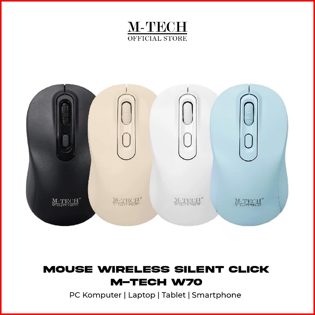 Mouse Wireless M-tech W- 70 Silent Click Free Battery Untuk Pc Laptop Smartphone Mtech - Garansi 1 Tahun