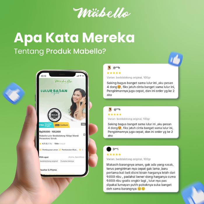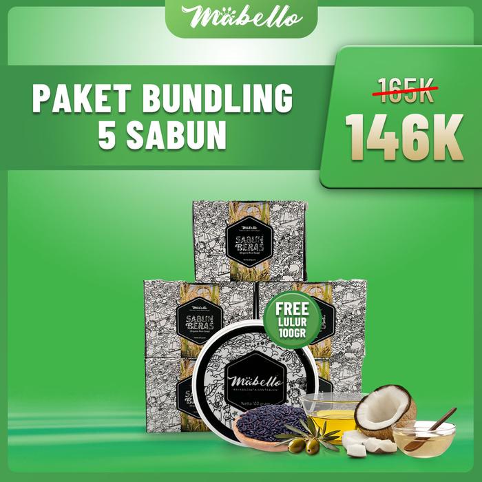Mabello Paket Bundling 5 Sabun Beddalotong Free Lulur 100Gr Mencerahkan Tubuh Melembutkan Kulit Kusam Hitam Memutihkan &