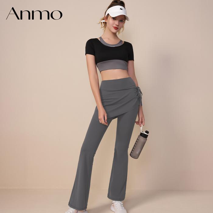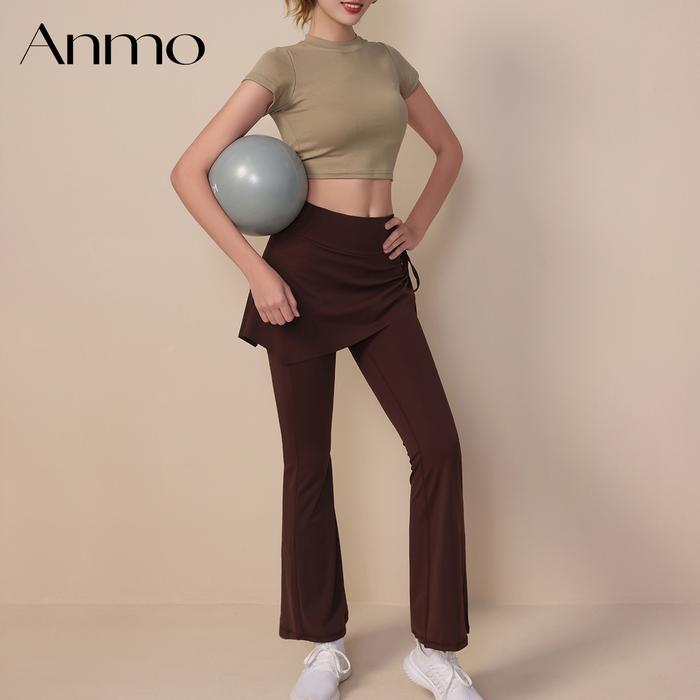 Anmo-Celana Rok Yoga 2-In-1 Celana Running Sports ,Celana Fitnes Anti Eksposure Bahan Stretch Tinggi Celana Yoga Denga