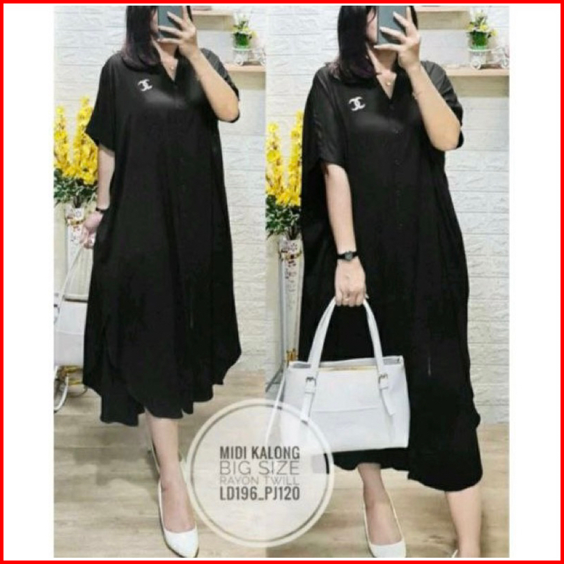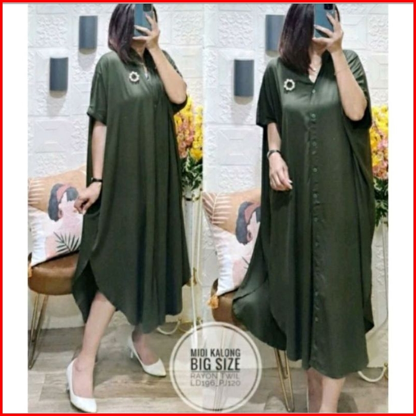 Midi Kalong Kalong Big Size Daster Lowo Rayon Jumbo Dress Weeding Kondangan Full Kancing Busui Ld 160 Pb 120