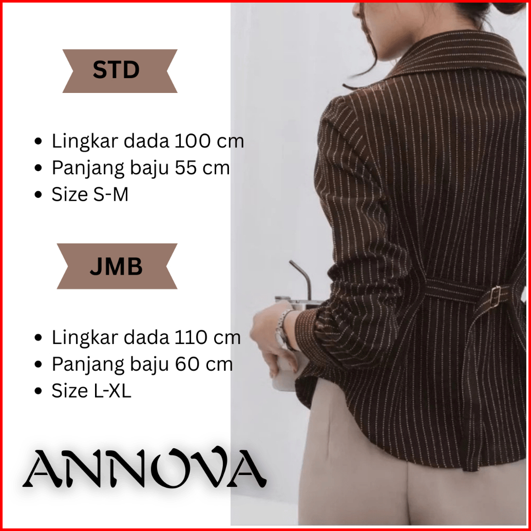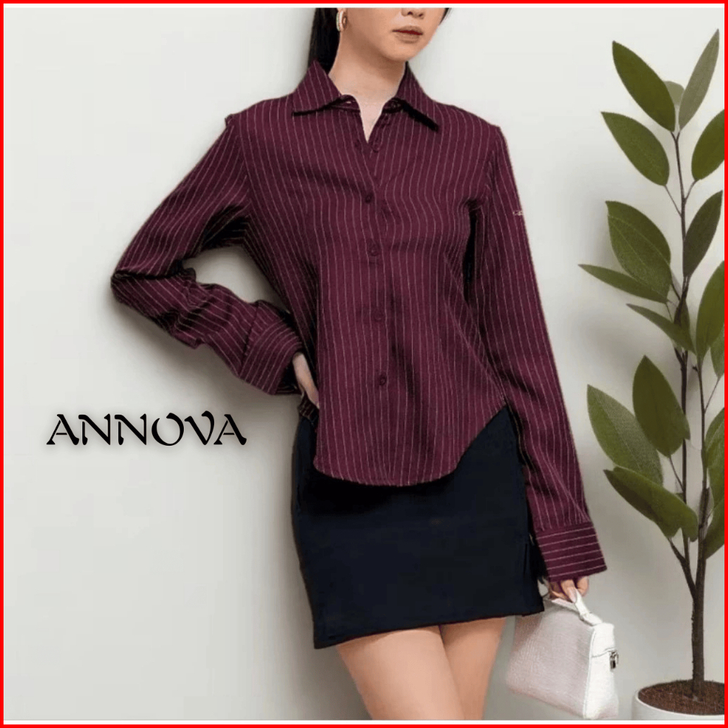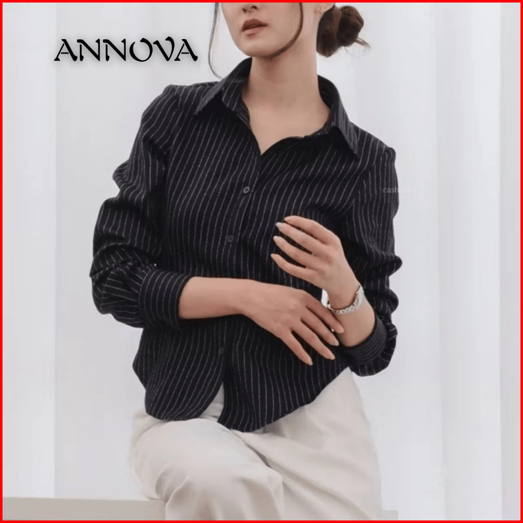 Luna Stripe Kemeja Fitted Wanita Atasan Salur Lengan Panjang Kantor