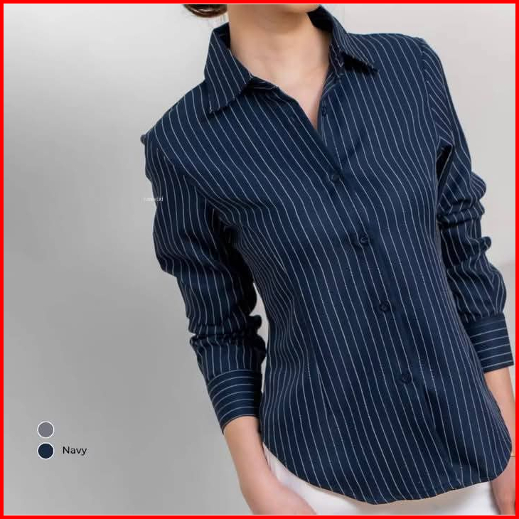 Kemeja Fitted Wanita Stripe Salur Basic Casual Maroon