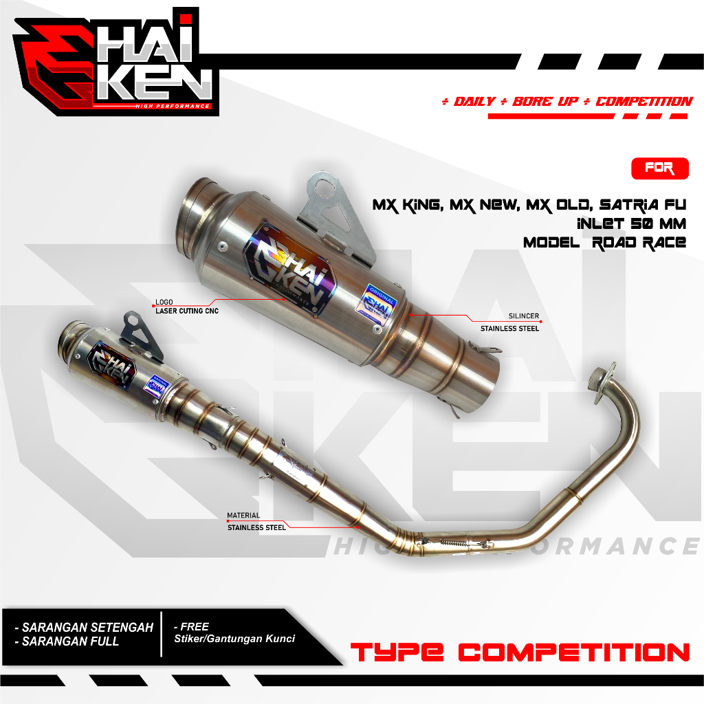 knalpot original haiken type competisi el solo/roadrace style mx king mx new old satria fu fi