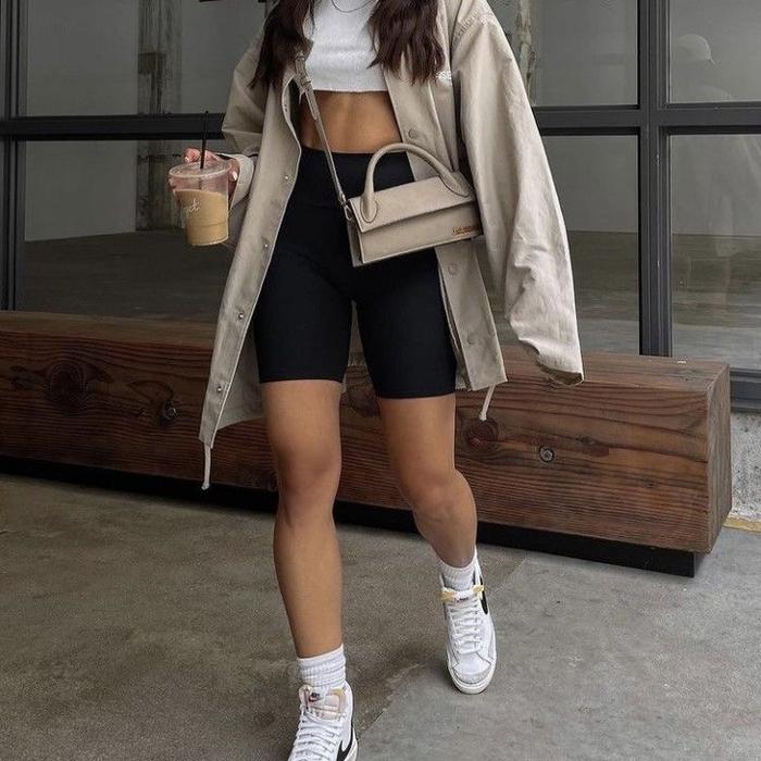 Clouwny - Legging Sepeda Wanita Biker Short Legging Highwaist Sport Celana Sexy Leggings - Black, Allsize