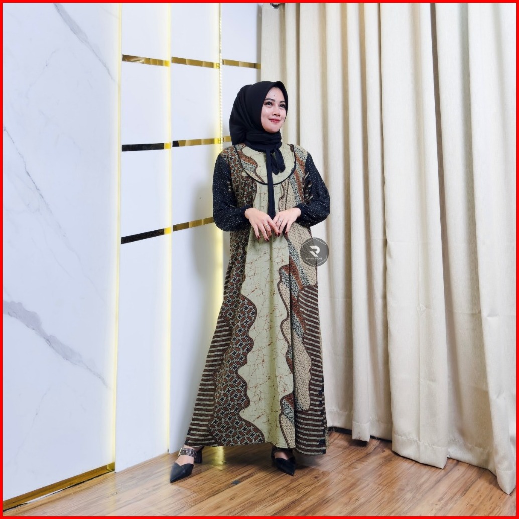 Rifina Store Kaluna Dress Rayon Premium Motif Batik Klasik Busui Bumil Friendly Adem Nyaman