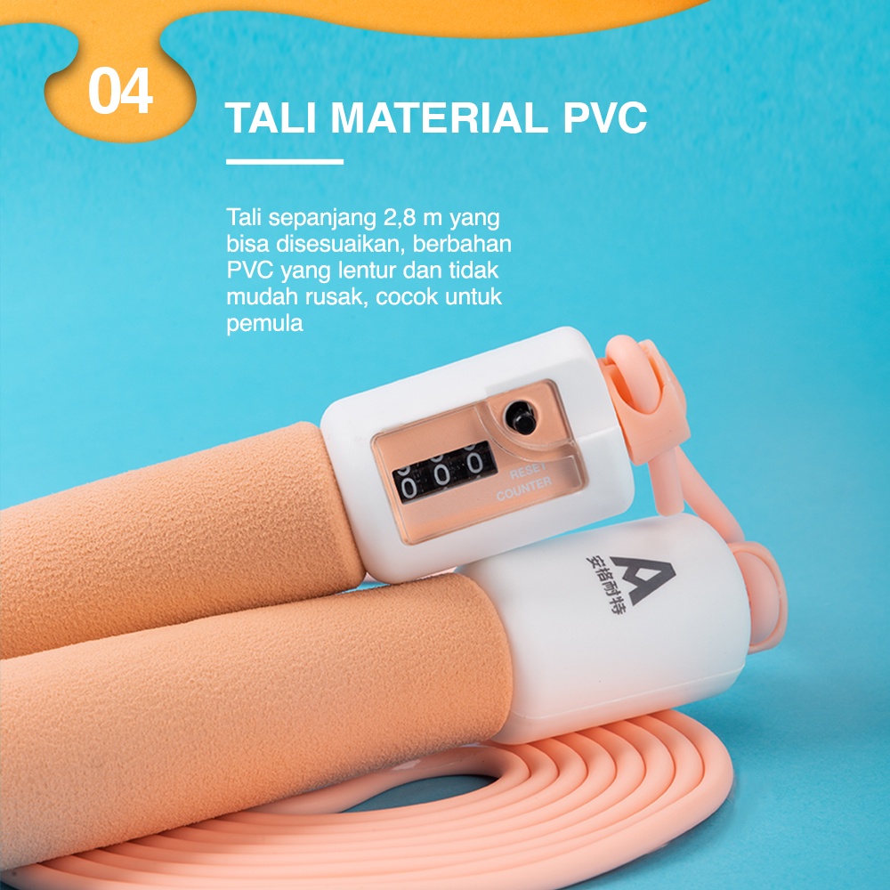 Agnite Skipping Rope Tali Olahraga Jump Rope with Counter Lompat Loncat Tali Hitung Otomatis F41XX