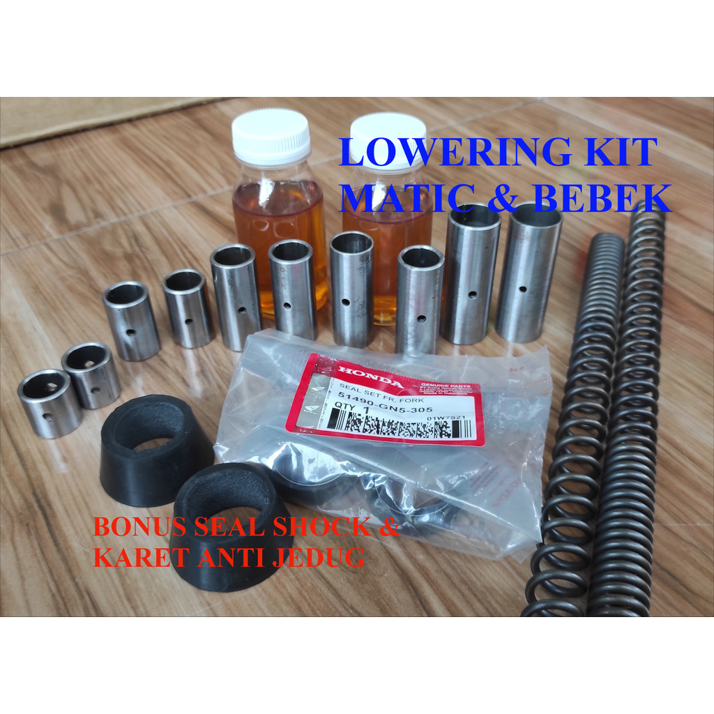 Lowering Shock Depan Downsize All Matic Plus Seal Shock + Karet Peredam Nmax-Aerox-Pcx-Vario dll Boshing 1 Paket Plus Ka