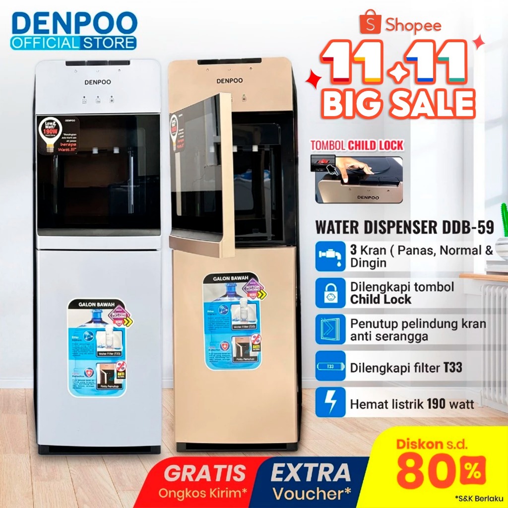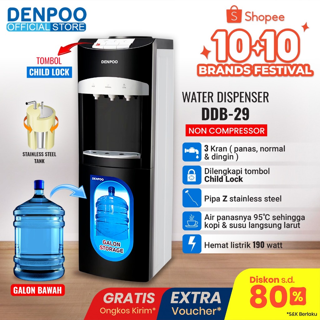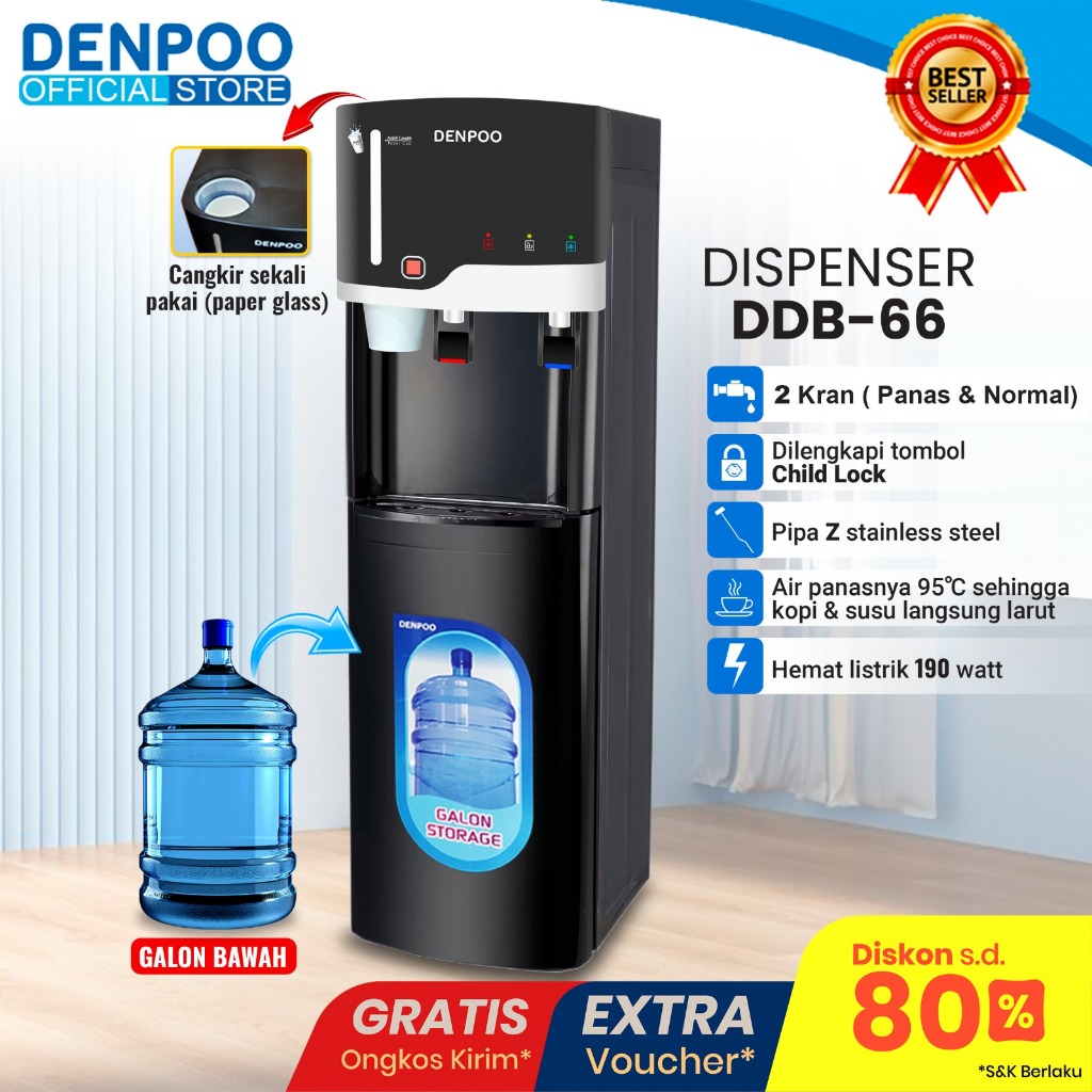 DENPOO Dispenser Air Minum Galon Bawah Panas Dingin Es Best Seller Miyako Sanken Cosmos Polytron Philips Sharp Midea