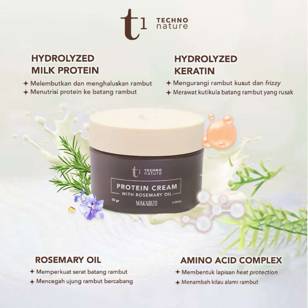 Makarizo T1 Techno Nature Protein Cream Moisturizer Vitamin Rambut 50 ML