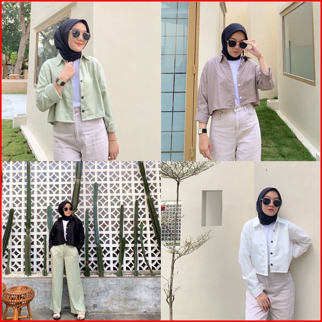 Kemeja Crop Top Polos Korea Bahan Moscrepe