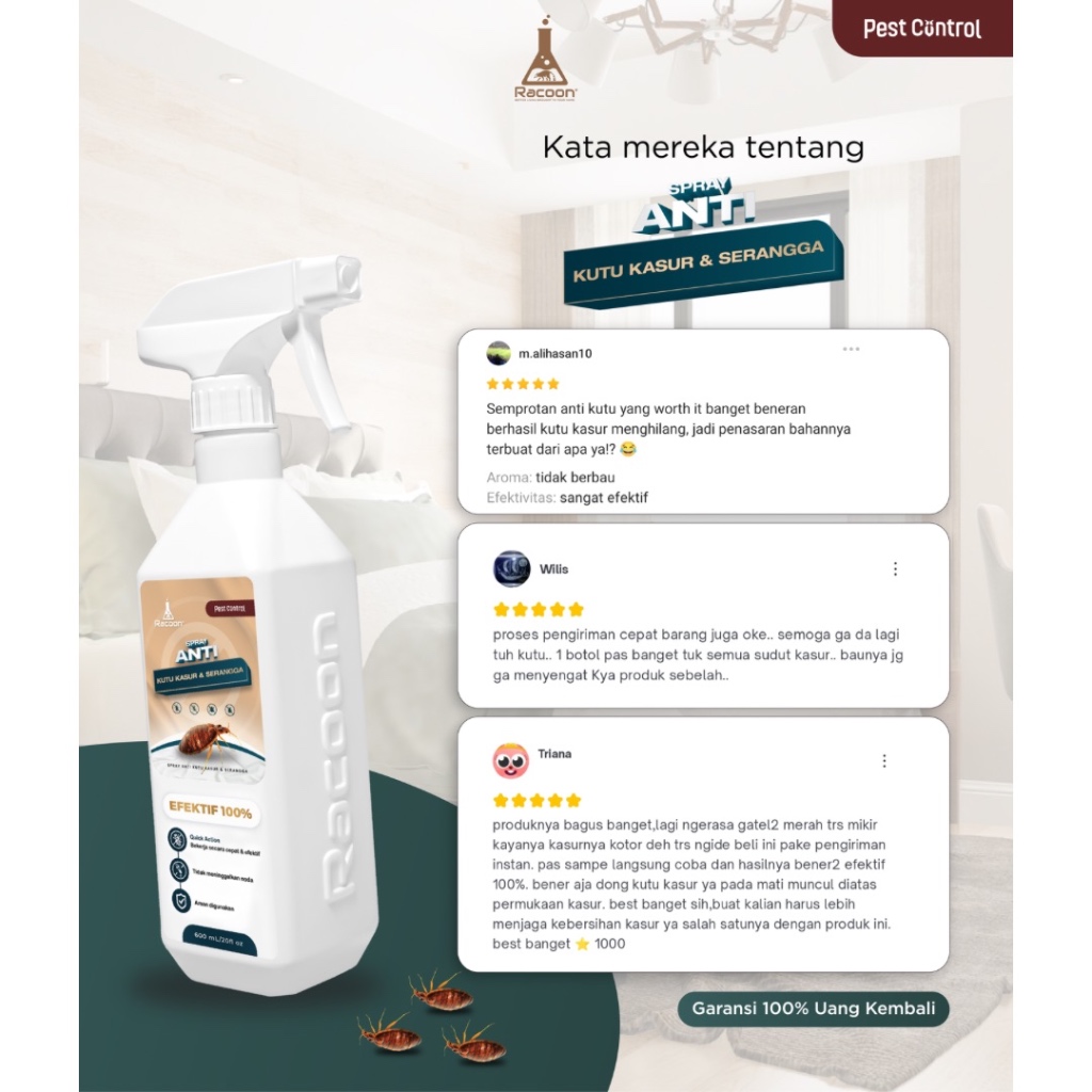 Racoon Anti Kutu & Serangga 500ml / Kutu Busuk / Tungau / Kutu Kasur 100 PERSEN Efektif Atau Kembali