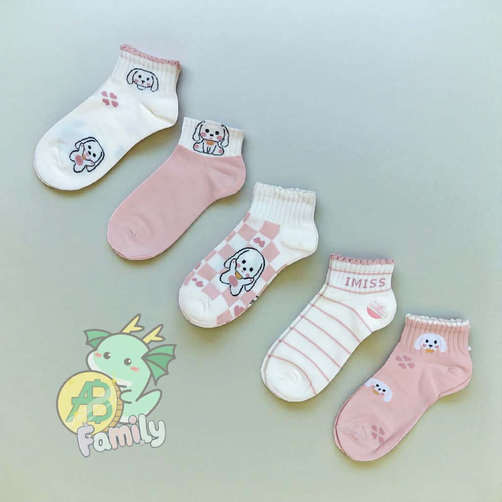 S3P 5Pasang Kaus Kaki Wanita Remaja Dewasa Lucu Kaos Kaki Pendek Semata Kaki Doggy Import