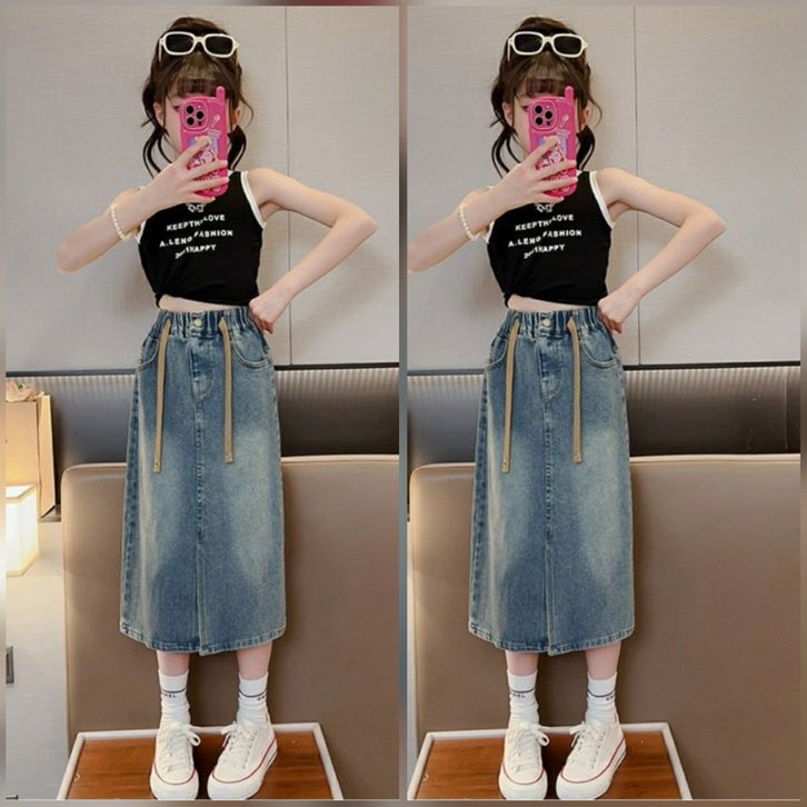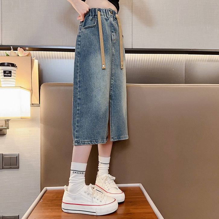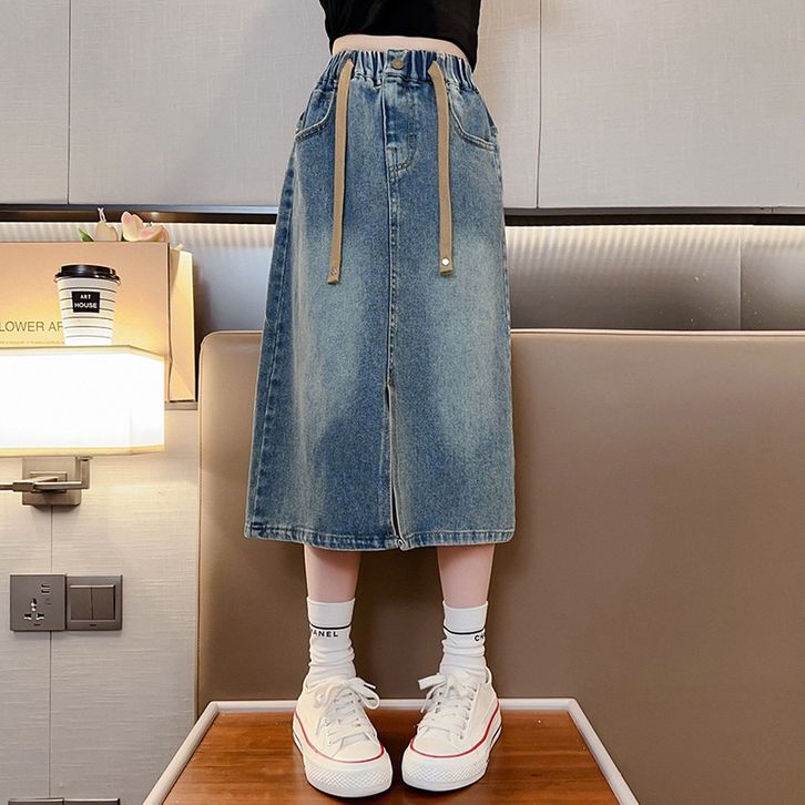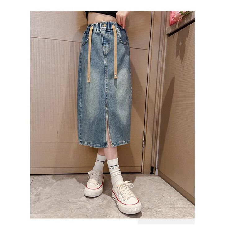 Rok Jeans Anak Tanggung Perempuan Model Rok Belah Depan Usia 6 7 8 9 10 11 12 13 14 Tahun Terbaru