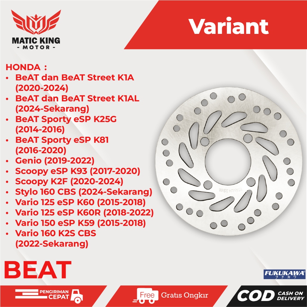 Piringan cakram disc brake Honda Beat Vario Scoopy Genio Deluxe Spacy 110/125/160 Fukukawa