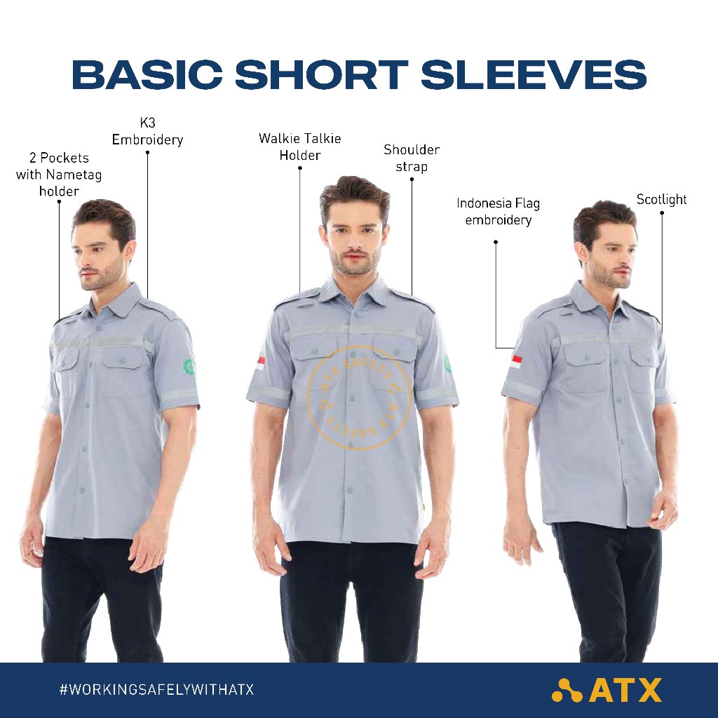 Wearpack Safety ATX/ Atasan Safety / Kemeja Safety / Seragam Proyek Wearpack Kerja Lengan Pendek K3