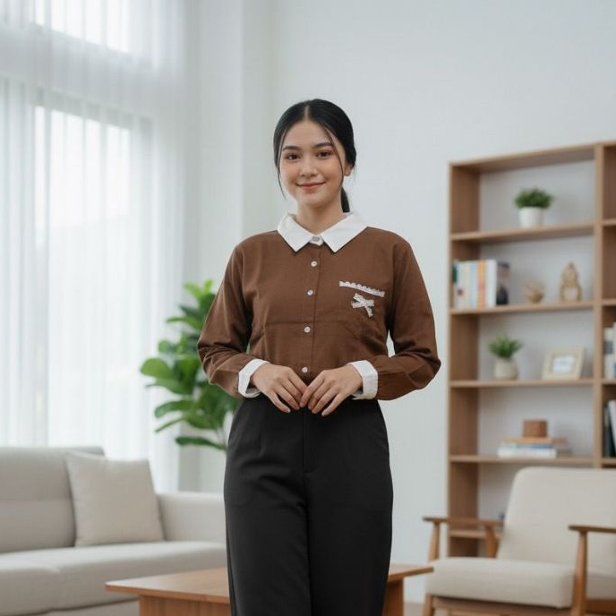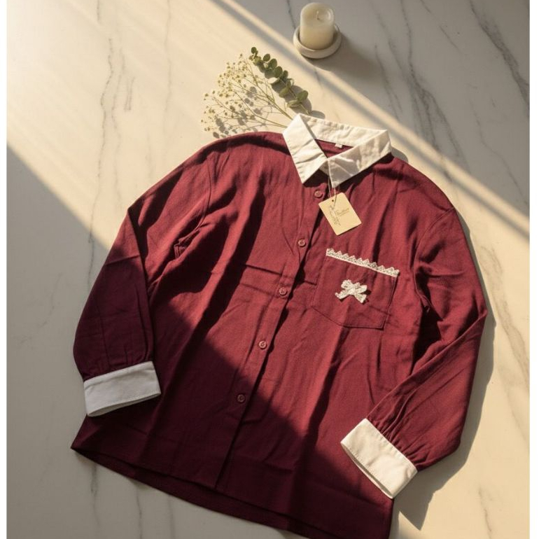 [Star] Kemeja Blouse Wanita Premium Lengan Panjang Kerah Putih Motif Pita Gaya Korea Elegan Atasan Wanita Terbaru
