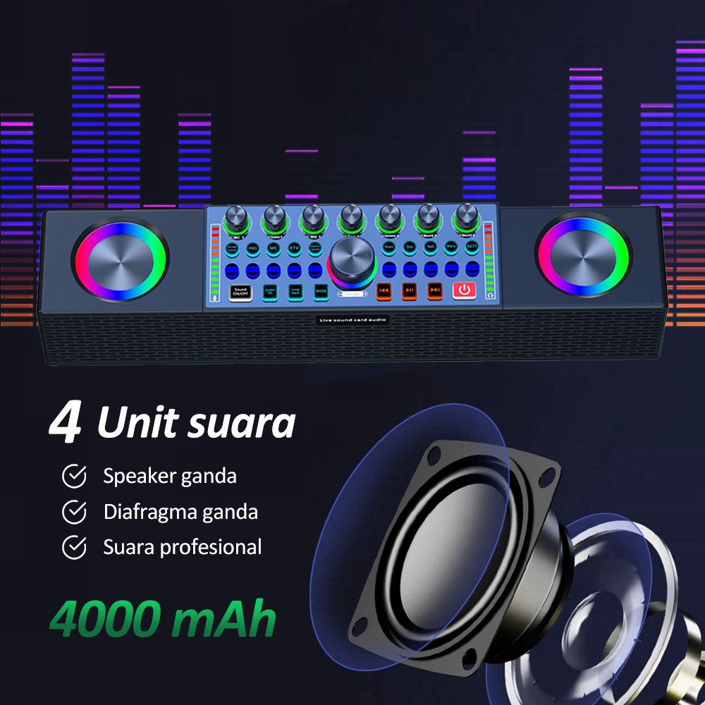 SOUND CARD SY6 Bluetooth Speaker All-in-One + Two Wireless Microphone soundcard Live Singing Karaoke