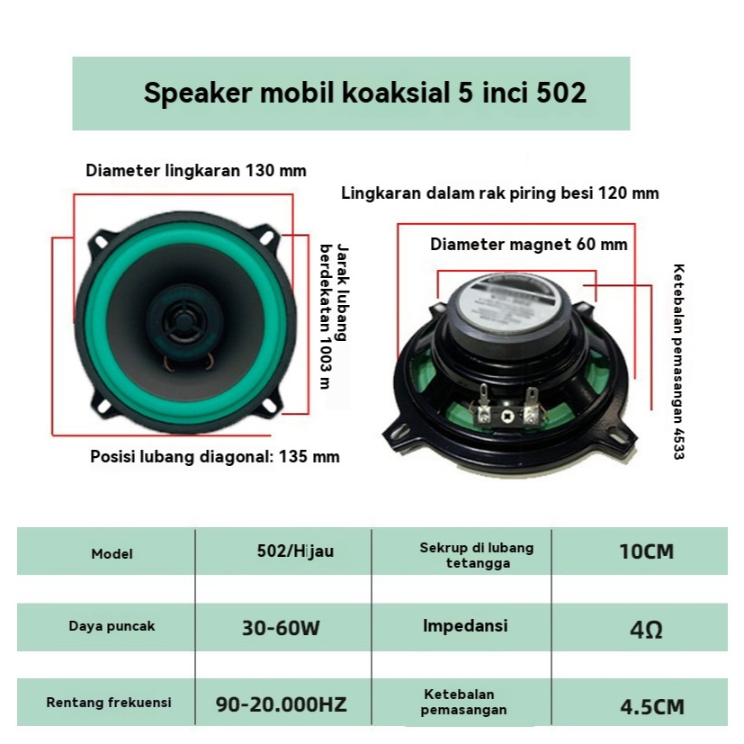 Speaker Mobil Dua Arah 4/5/6.5 Inci, Coaxial Subwoofer Pintu, Audio Stereo Frekuensi Penuh