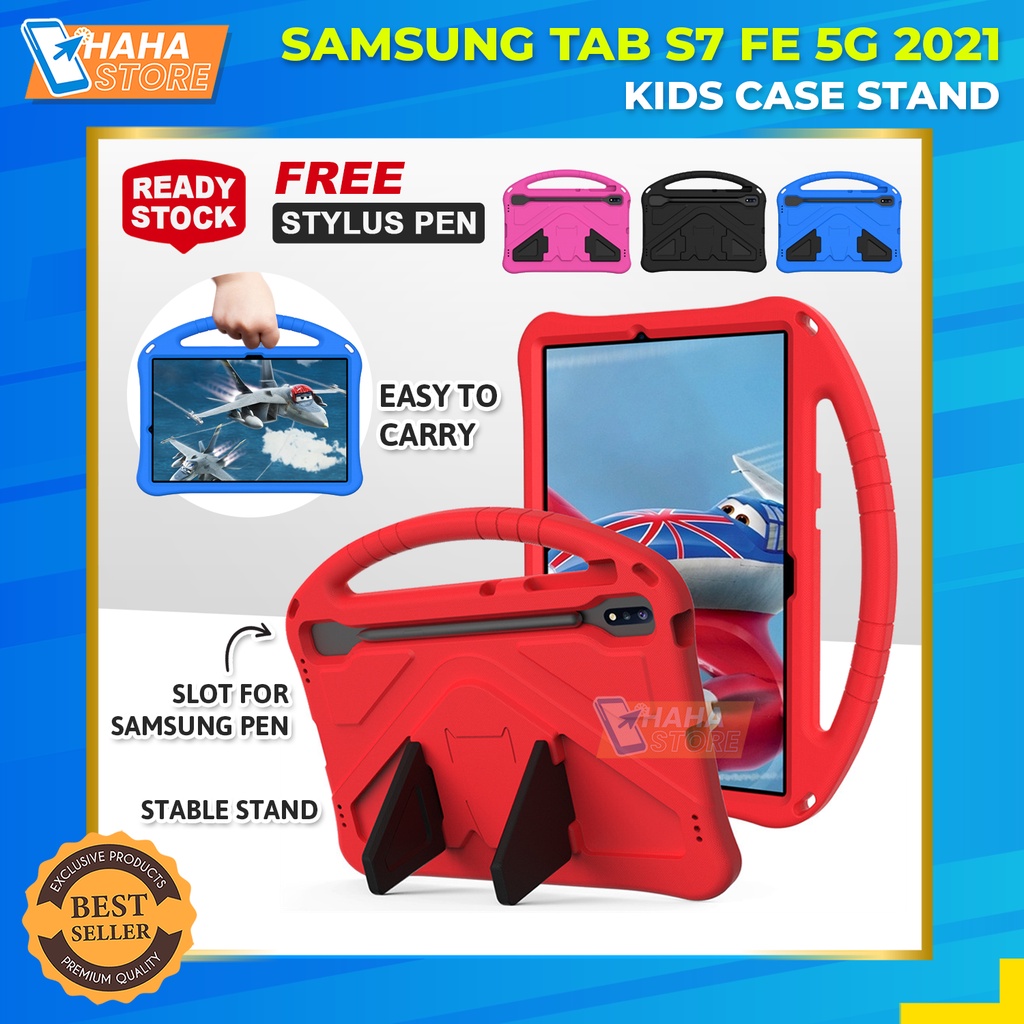 Samsung Galaxy Tab S7 FE 5G 2021 SM T730 T736B Protective Case Kid Stand Sarung Casing Anak Kesing Armor Hand Strap Jinjing Pelindung Tablet