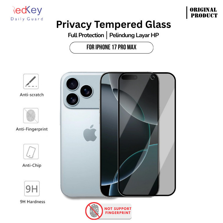 Redkey Privacy Tempered Glass For iPhone 17 Pro Max Full Cover Anti Spy Anti Gores Layar