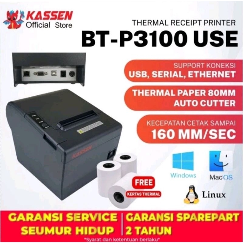 Kassen BT-P3100 BTP-3100 / BT P3100 Bluetooth Termal Receipt Printer 80mm