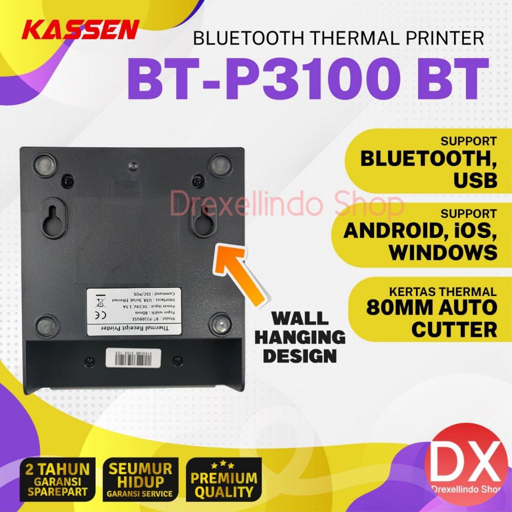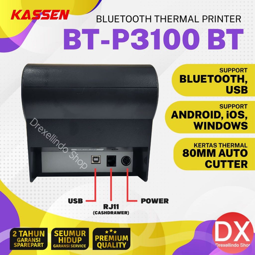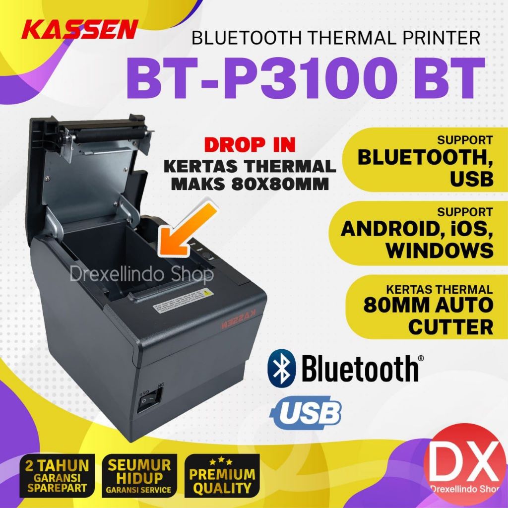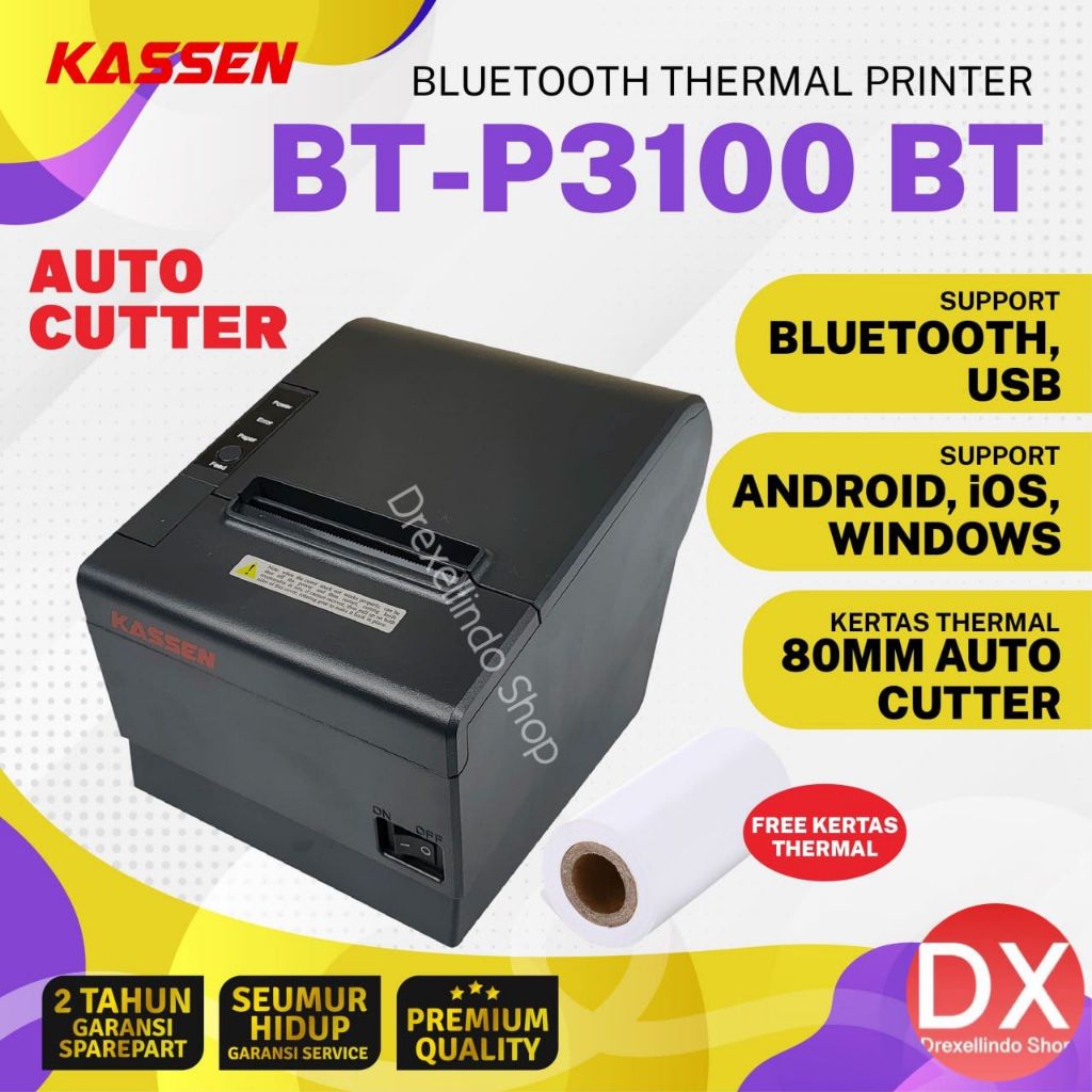 Printer Thermal Struk Kasir 80mm KASSEN BT-P3100 / BTP3100 / BTP3100 BT Auto Cutter USB BLUETOOTH