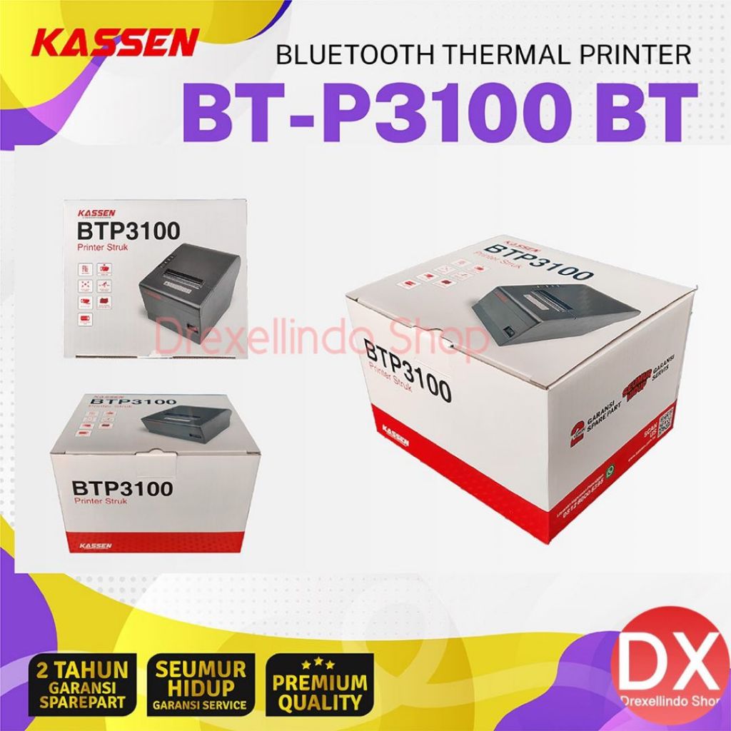 Printer Thermal Struk Kasir 80mm KASSEN BT-P3100 / BTP3100 / BTP3100 BT Auto Cutter USB BLUETOOTH