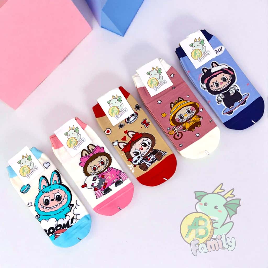 S5L 5Pasang Kaus Kaki Semata Kaki Wanita Remaja Dewasa Kaos Kaki Labubu Lucu Import Kualitas Premium