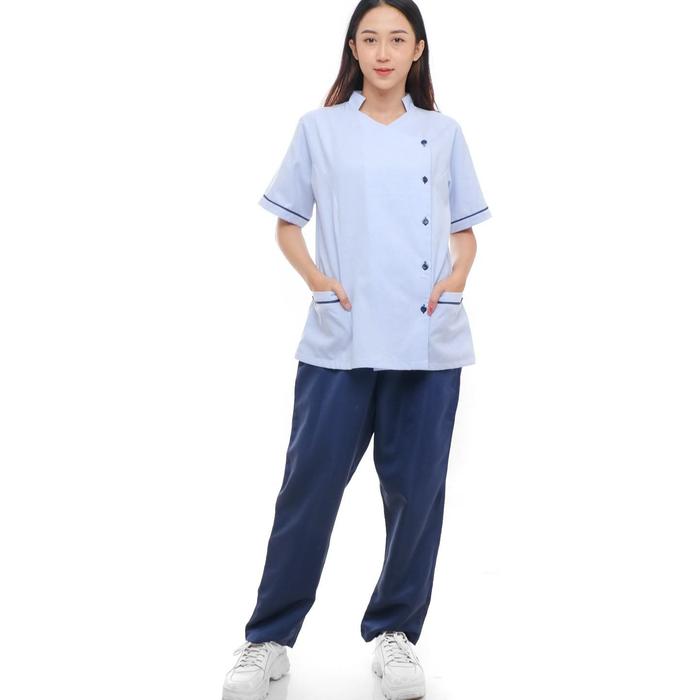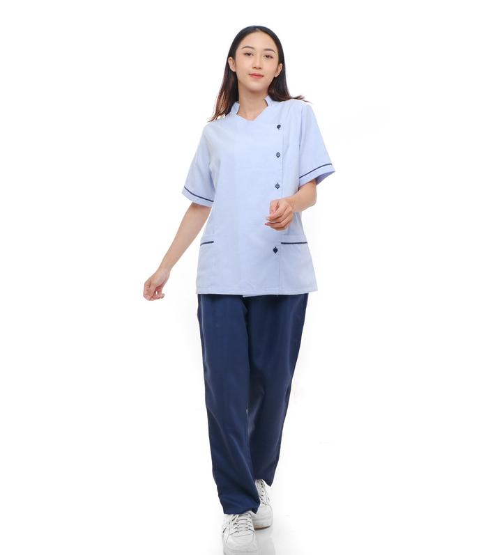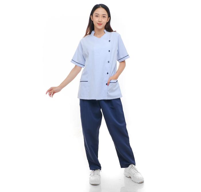Serenity Care Combi Set | Seragam Suster Klinik | Seragam Perawat Oka Kancing Luar | Seragam Baby Sitter Katun Setelan